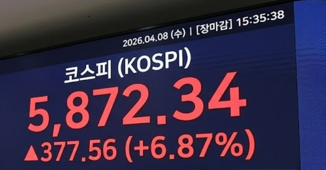 26년 4월 8일 코스피 마감 지수. 단순 자료 사진. 기사 이해를 돕기 위해 AI로 제작한 이미지.
