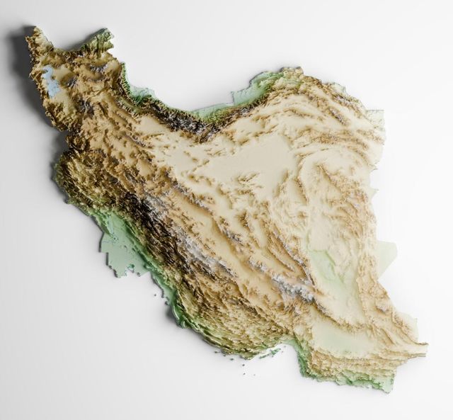 사방이 거대한 산맥으로 둘러싸인 ‘천혜의 요새’ 이란의 험준한 지형적 실체를 보여주는 3D 릴리프 지도. / Paulo Figueiredo Junior-shutterstock.com