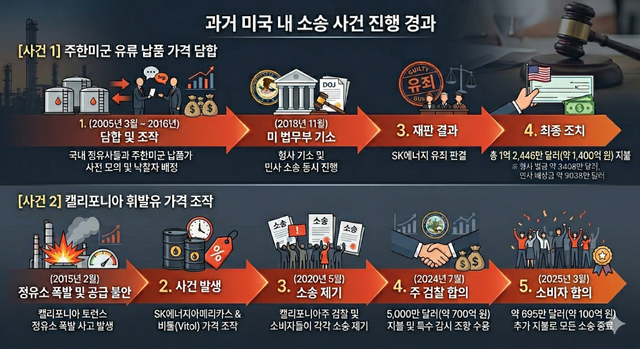 최근 검찰이 국제 정세 불안에 따른 유가 변동을 틈탄 가격 담합 의혹에 휩싸인 SK그룹의 정유 계열사(SK이노베이션, SK에너지)를 정조준하면서 '정유업계의 가격 담합' 의혹이 사회적 이슈로 떠올랐다. 이번 수사는 이재명 대통령이 유가 급등 시기 일부 업체의 폭리 행태를 강하게 질타하며 국민적 감시를 당부한 직후 전격적으로 이뤄졌다는 점에서 정부의 강력한 사정 의지가 반영된 결과라는 해석이 팽배하다. 특히 SK그룹이 과거 미국에서도 수차례 유류 납품 담합으로 막대한 벌금을 문 전례를 보유하고 있다는 사실이 새삼 재조명되면서 수사 결과에 더욱 많은 관심이 모아지고 있다.