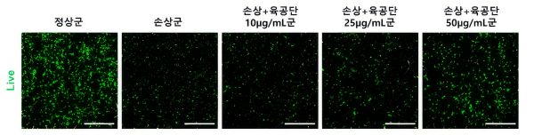아울러 과산화수소를 투여할 때 육공단을 각각 10·25·50μg/mL 농도로 동시에 투여한 경우 육공단 농도가 높아질수록 초록색 형광 신호가 점진적으로 회복돼 육공단이 산화 스트레스부터 신경세포를 보호한다는 사실을 알 수 있었다.