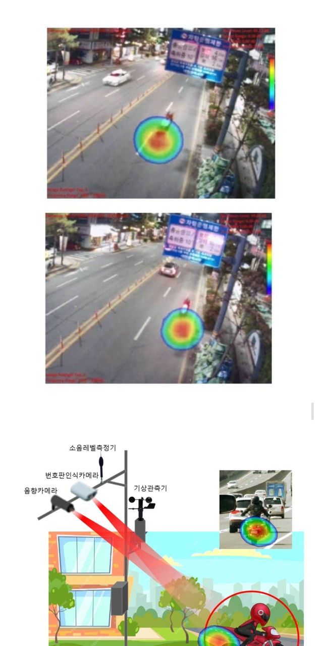 하지만 신형 장비는 이륜차가 지나는 순간 발생하는 소음 레벨을 실시간으로 측정합니다. 만약 지자체에서 설정한 일정 소음 수치를 초과하는 굉음이 감지되면, 기상 계측기와 연동된 음향 카메라가 소리의 근원지를 정확히 포착합니다.