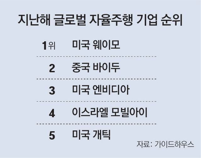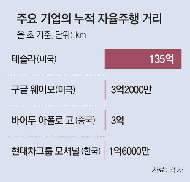 하지만 업계에서는 완성형에 근접한 모셔널을 규제가 덜한 미국에서 고도화시킨 뒤 국내에 빠르게 이식하는 게 격차를 좁힐 현실적 대안이라는 시각이 많다. 포티투닷을 중심으로 한 자체 기술 내재화에만 매달리다간 자칫 추격의 ‘골든타임’을 놓칠 수 있다는 우려에서다. 업계 관계자는 “카메라, 라이다, 레이다를 모두 쓰는 ‘정석’ 모셔널의 기술력은 웨이모보다 덜하지만 ‘카메라 온리’ 테슬라보다 이미 높다”고 평가했다.