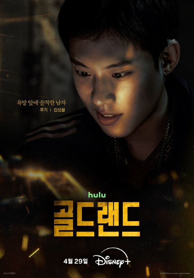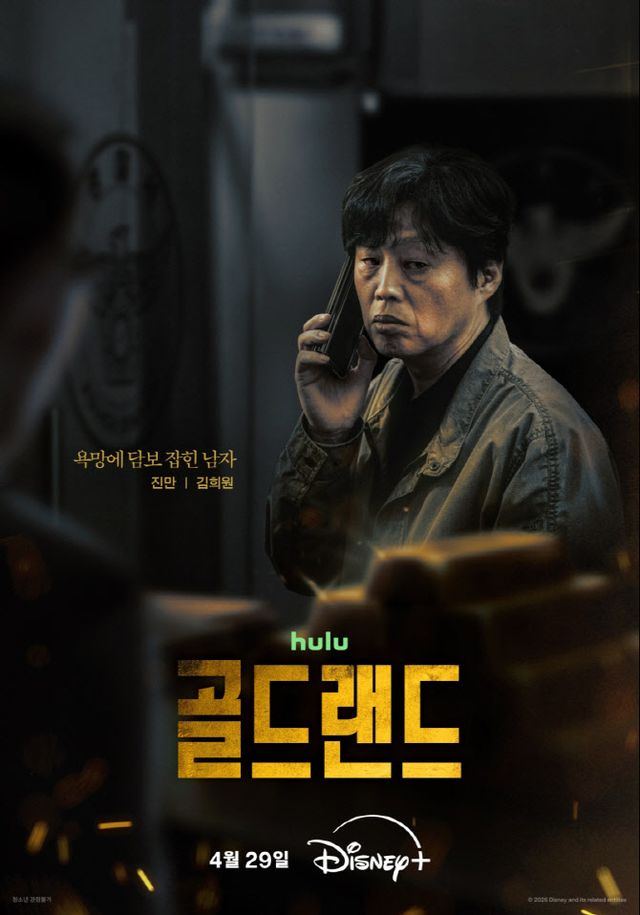디즈니플러스 새 시리즈 ‘골드랜드’는 9일 1500억 금괴 앞에서 드러난 인간의 본능과 욕망을 포착한 캐릭터 포스터를 공개했다.