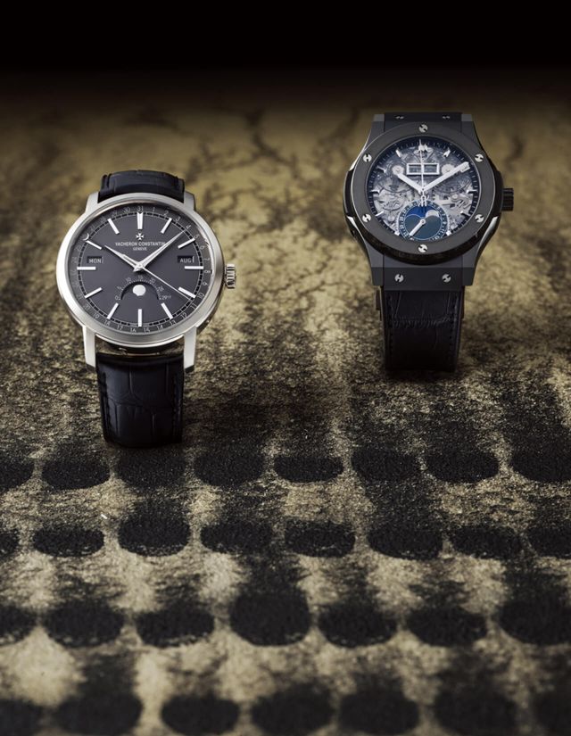 VACHERON CONSTANTIN, 지름 42mm의 블랙 세라믹 케이스에 HUB1131 셀프와인딩 문페이즈 무브먼트를 탑재한 클래식 퓨전 에어로퓨전 문페이즈 블랙 매직 워치