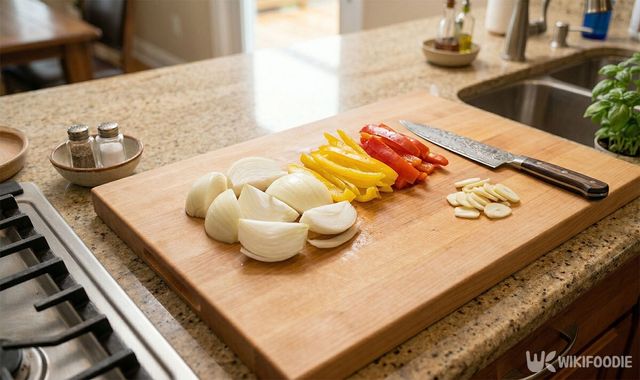 양파와 새송이버섯은 씹는 맛이 느껴지도록 도톰하게 썰어둔다. 파프리카는 얇게 채 썰고 마늘은 편으로 썰어 준비한다.
