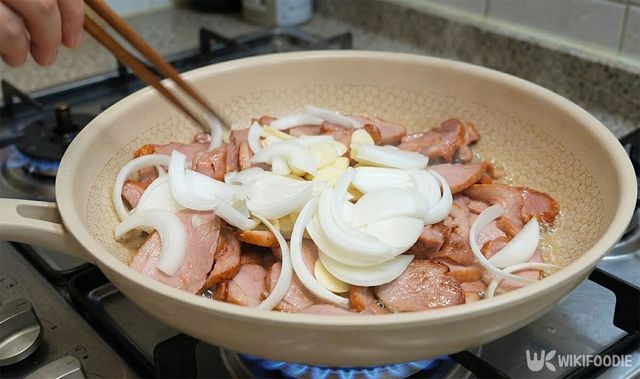 팬을 달군 뒤에는 식용유를 두르지 않는다. 훈제 오리 자체에서 기름이 넉넉히 나오기 때문이다. 오리를 먼저 넣고 볶다가 기름이 과하게 나오면 키친타월로 가볍게 눌러 닦아낸다.