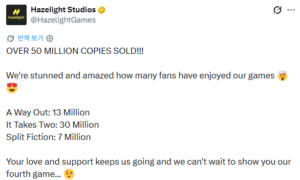 한편, 헤이즈라이트 스튜디오는 “우리의 게임을 즐겨준 팬들이 얼마나 많은지 믿기지 않고 놀랍다”며 “여러분의 사랑과 지지가 우리를 계속 이끌어주고 있으며, 네 번째 게임을 여러분께 보여드릴 날을 손꼽아 기다리고 있다”고 전했다.