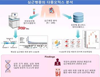 질병관리청 국립보건연구원이 국내 심근병증 환자 245명의 유전체와 세포 데이터를 통합 분석한 다중오믹스 연구를 통해 질환과 관련된 핵심 유전자 144개를 발굴하고, 심장 조직 내 세포 간 상호작용이 발병에 중요한 역할을 한다는 사실을 규명했다.