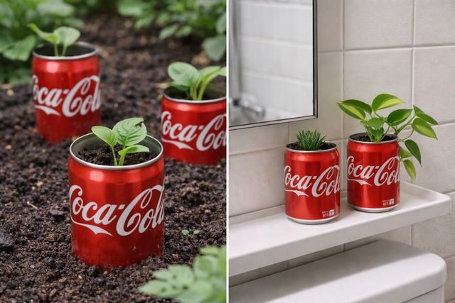 콜라 캔은 화장실 내 좁은 선반에 두기 적당한 크기의 미니 화분으로도 활용할 수 있다. 고온다습한 환경을 선호하는 식물을 캔 화분에 심어 거울 옆이나 변기 위에 배치해 보자. 캔의 금속 질감이 욕실의 타일과 어우러져 현대적인 분위기를 연출하는 동시에, 식물의 제습 및 공기 정화 효과까지 기대할 수 있다.