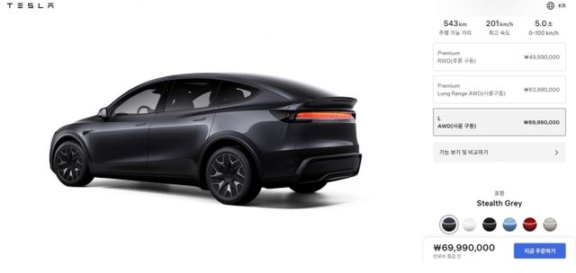 테슬라 모델 Y L 가격 페이지. 사진=테슬라코리아 홈페이지