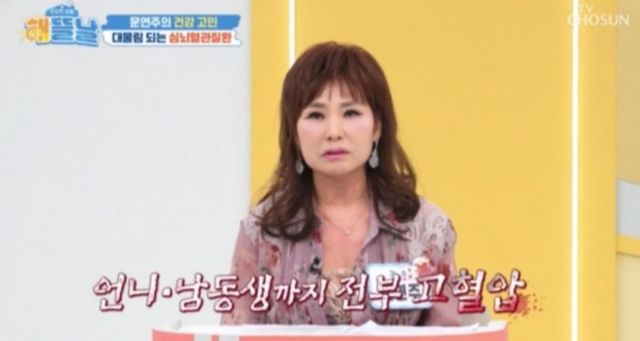 이날 방송에서 문연주는 “부모님이 모두 고혈압이랑 뇌출혈로 돌아가셨다. 언니와 남동생도 전부 고혈압 약을 먹는다”며 “심혈관질환이 얼마나 무서운지 누구보다도 잘 알고 있다”고 털어놓았다.
