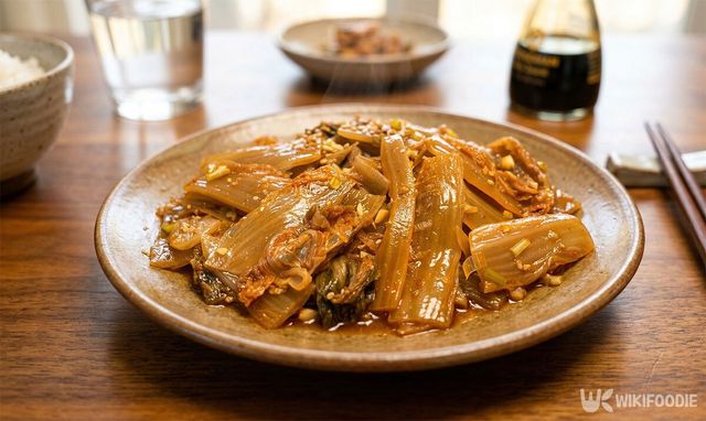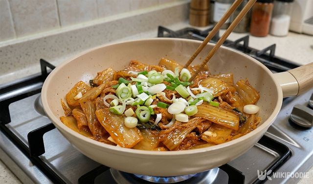 팬에 식용유를 두르고 중불에서 조리를 시작한다. 묵은지를 넣고 천천히 볶으면 수분이 나오면서 자연스럽게 졸아든다. 이때 묵은지가 투명해지며 꼬들꼬들한 식감이 살아난다. 더 부드러운 맛을 원한다면 물 100ml 정도를 넣고 약불로 줄여 은근하게 익힌다.