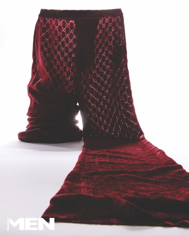 구찌의 라 파밀리아 컬렉션은 과감한 섹시함과 화려함, 대담한 태도를 전면에 내세웠다. 몸에 밀착되는 실루엣, 속이 비치는 시스루, 호사스러운 벨벳의 촉감이 섞인 과장된 부츠컷 팬츠는 퇴폐적이고 화려한 남성성을 선명하게 드러낸다.