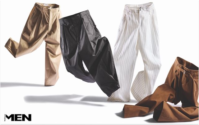 패션은 특별한 날에만 존재하는 것이 아니라 일상의 모든 순간에 함께한다는 메시지가 모스키노 2026 S/S 컬렉션의 바탕이다. 그 일환으로 드레시한 플리츠 팬츠 밑단에 조거 팬츠처럼 발목을 조이는 디테일을 더하는 방식을 택했다.