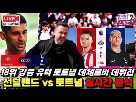 [입중계 LIVE] 18위 강등 임박 토트넘 데체르비 감독 데뷔 선덜랜드전 '실시간 분석'