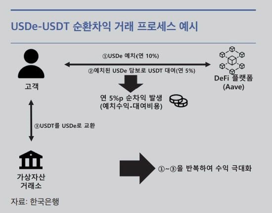 이어 “가계 및 금융기관의 건전성을 저해할 수 있는 과도한 레버리지 활용 및 거래소의 여신 행위에 대한 감독을 강화할 필요가 있다”면서 “유사 이자 지급이 원인이 된 USDe 사태를 교훈 삼아, 향후 원화 스테이블코인 도입 시 제도 설계를 더욱 정교화해야 할 것”이라고 덧붙였다.