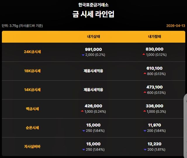 순금 : 매입가 99만 1000원 / 매도가 83만 원