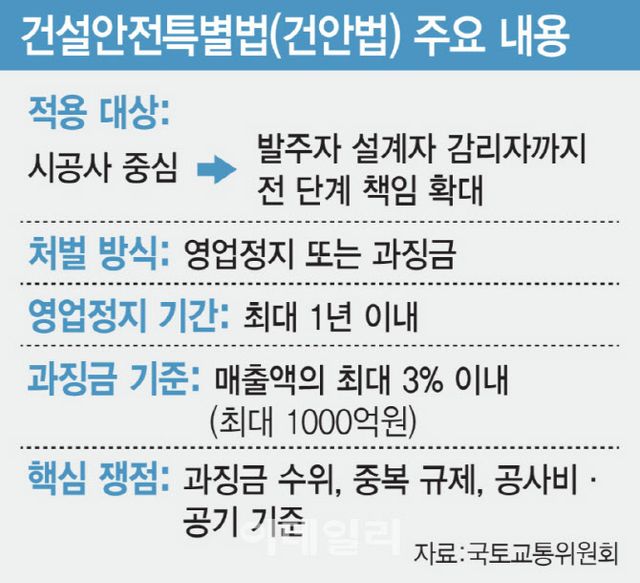 반면 업계와 일부 야당 의원들은 제도 취지와 별개로 처벌 방식과 제도 현실성을 문제 삼았다. 배준영 국민의힘 의원은 “사고를 단 한 건이라도 줄일 수 있다면 법을 만드는 것이 필요하다고 생각한다”면서도 “다만 규제가 공급 위축으로 이어질 가능성도 함께 고려해야 한다”고 지적했다. 서울 아파트 공급 부족을 해소해야 하는 정책 과제와 병행해 볼 때 과도한 규제가 결과적으로 주택 공급 약화로 이어질 수 있다는 우려다.