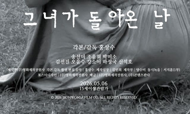 [TV리포트=강지호 기자] 홍상수 감독의 34번째 장편영화가 국내 관객을 찾는다. 영화제작전원사는 홍상수 감독의 34번째 장편 신작 ‘그녀가 돌아온 날’이 오는 5월 6일 국내 개봉을 확정했다는 소식과 함께 포스터와 예고편을 14일 공개했다.
