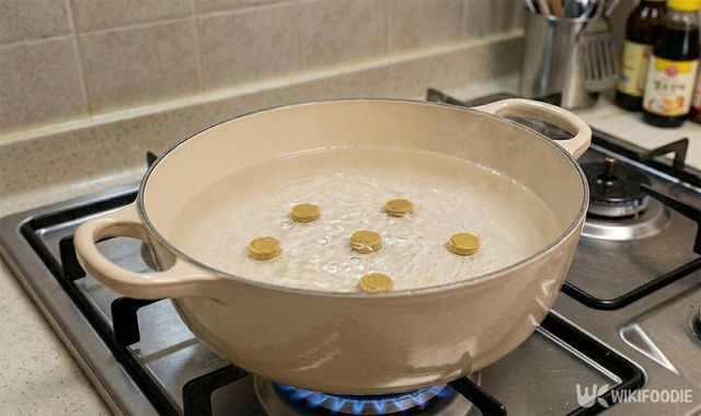 냄비에 물 3L와 한식 육수 5알을 넣고 끓이다가 찹쌀가루 4큰술을 풀어 풀국을 만든 뒤 충분히 식힌다.