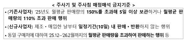 고시에 따라 제조업자, 판매업자는 주사기(4종), 주사침(3종)*을 폭리를 목적으로 고시에서 정하는 기준 이상 ▲과다보유 ▲판매기피 ▲특정 구매처에 과다 판매하는 행위가 금지된다.