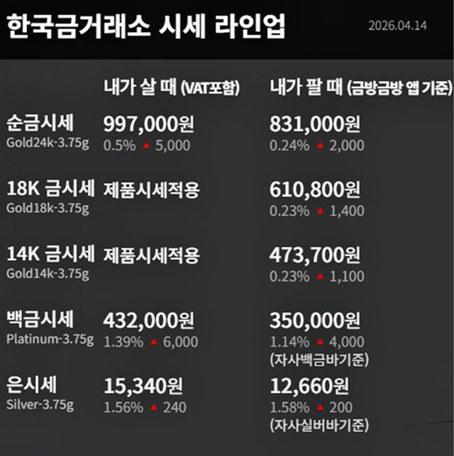 14K 금 : 매입가 '제품 시세 적용' / 매도가 47만 4200원