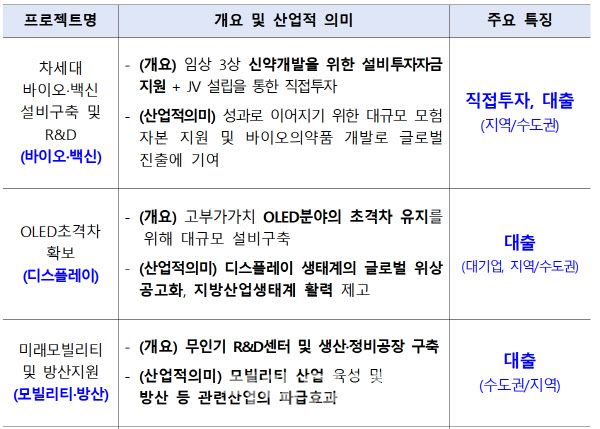 투자 방식도 보다 공격적으로 바뀐다. 금융위는 민간이 감당하기 어려운 영역에 대해 직접투자를 확대하는 한편, 대출과 펀드 투자를 병행하는 ‘혼합형 구조’를 도입할 계획이다. 바이오 분야의 경우 글로벌 임상 3상 단계 기업을 대상으로 수천억원 규모의 자금이 투입될 가능성이 거론된다. 디스플레이 등 대규모 설비 투자가 필요한 분야는 조 단위 지원도 검토되고 있다. 반면 일부 중소·중견기업에는 수백억원 수준의 대출이나 투자도 병행될 예정이다.