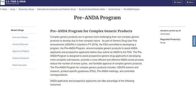 실제로 FDA는 'Pre-ANDA Program'에 대해 "ANDA를 제출하기 전 단계에서 신청자 또는 예비 신청자를 지원하기 위해 마련된 제도로 보다 완성도 높은 제출 자료를 준비할 수 있도록 돕고 ANDA 심사 과정의 효율성과 효과성을 높이며 심사 반복 횟수를 줄이고 궁극적으로 복합 제네릭 의약품의 허가를 촉진하는 것을 목표로 한다"고 설명하고 있다.