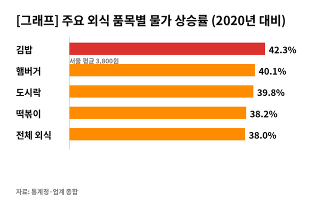 [프라임경제] 한때 '서민 음식'의 상징이었던 김밥이 이제는 '금밥'이라 불릴 만큼 몸값이 치솟았다.