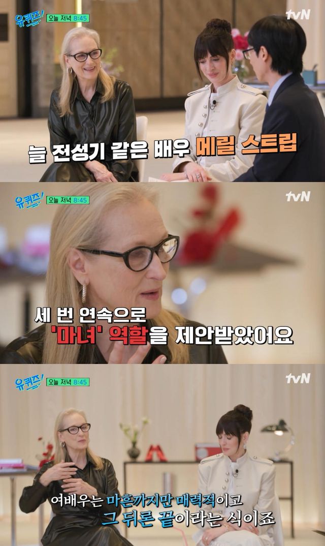 15일 tvN '유퀴즈 온 더 블럭' 측은 메릴 스트립과 앤 해서웨이의 에피소드를 일부 선공개했다.