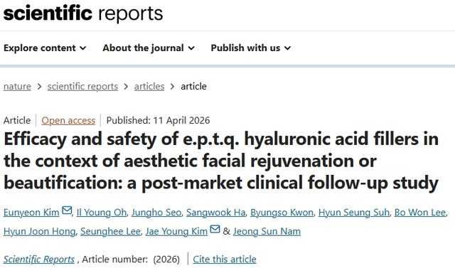 이번 논문 “Efficacy and safety of e.p.t.q. hyaluronic acid fillers in the context of aesthetic facial rejuvenation or beautification: a post-market clinical follow-up study”는 2022년 9월부터 2023년 5월까지 국내 8개 기관에서 9명의 연구진이 참여한 관찰 연구로 진행됐다.