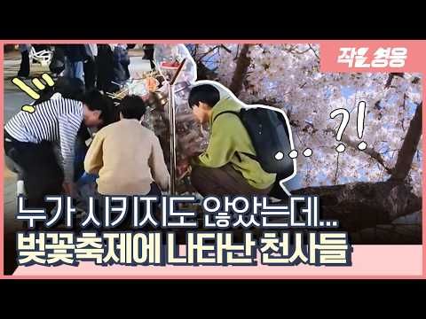 벚꽃 구경 하다말고 허리 굽힌 18살 소년들