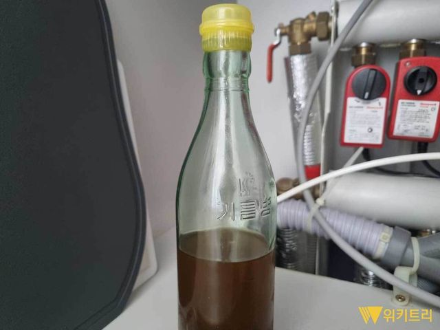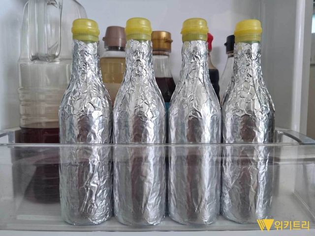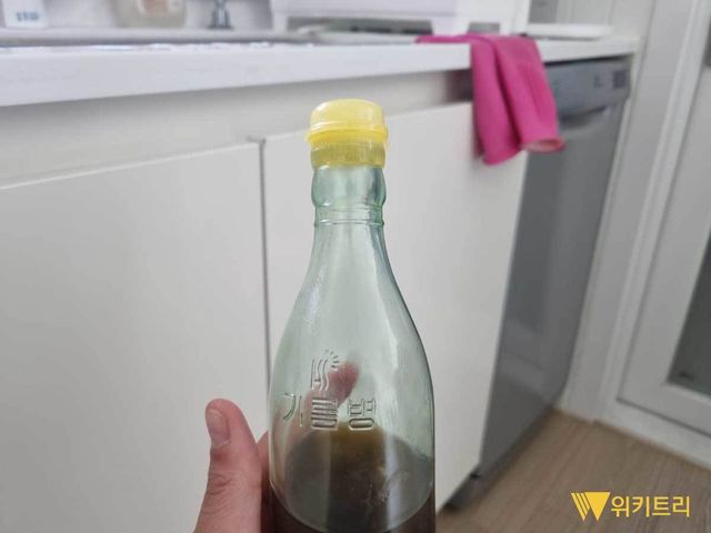 싱크대 하부장에 놓은 기름병. / 위키트리