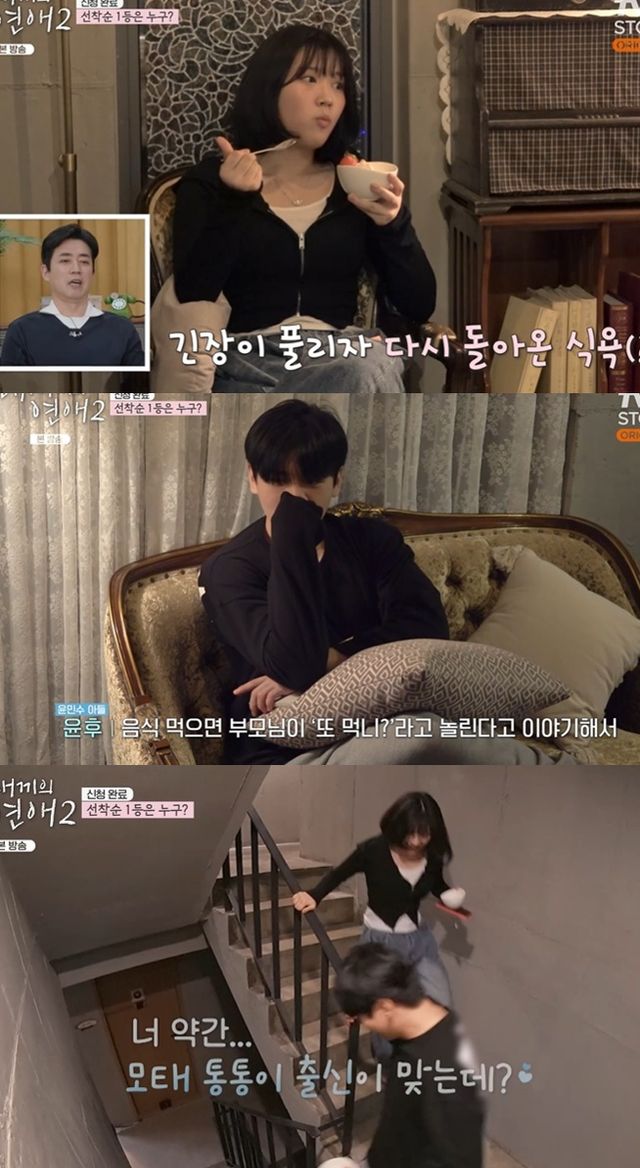 이후 계단을 함께 내려오며 장난을 주고받는 등 자연스러운 모습을 보여주며 마치 신혼부부를 연상케 하는 분위기를 형성했다. 이를 VCR로 지켜보던 부모들은 “아유 신났네”, “너네는 그냥 집에 있어라”라며 흐뭇한 ‘주접’ 반응을 쏟아냈다.