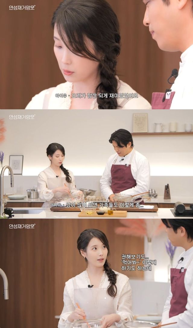 아이유는 "예전에는 찌개도 많이 해보고, 찜닭도 집에서 해봤다. 양이 많이 되면 가족에게 권해보기도 했는데 안 먹더라"고 실토해 웃음을 자아냈다.