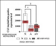 뇌 조직 분석에서도 의미 있는 변화가 확인됐다. 기억을 담당하는 뇌 부위인 해마(CA3)에서 알츠하이머병의 주요 원인 물질인 아밀로이드 베타 수치가 대조군(3282.00) 대비 청각 자극군(1174.67)에서 약 3분의 1 수준으로 급감했다.
