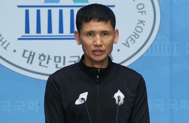 서울 여의도 국회 소통관에서 기자회견을 갖고 해양수산부의 배·보상 직권재심의를 촉구하던 김동수 씨 / 뉴스1