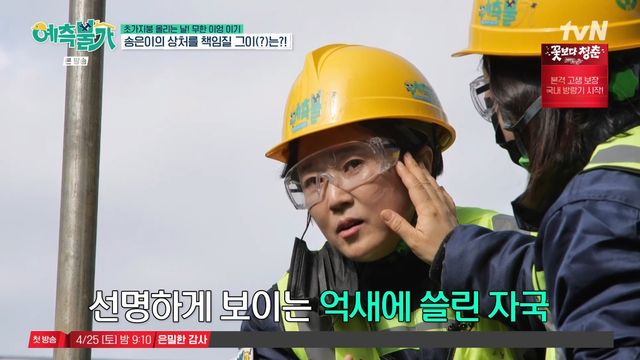 작업 중 송은이의 얼굴이 억새에 쓸려 상처가 났다. 이에 송은이는 "고소장을 보내려면 정확히 알아야 한다. 최소 4주 동안 일 못하는 거, 이것 때문에 소개팅 못 나가는 거 청구해야한다"며 분노했다.