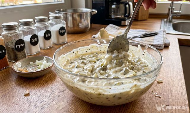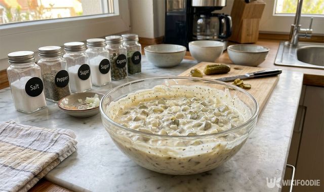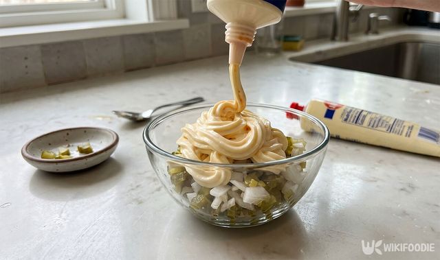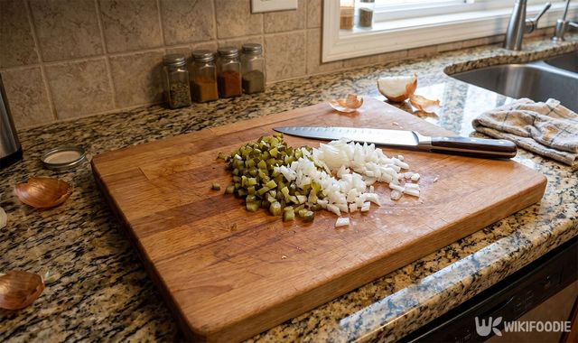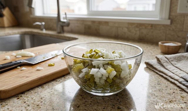 조리 과정은 매우 간결하다. 먼저 피클 10개는 잘게 다진다. 이때 씹는 맛이 살아 있도록 너무 곱게 갈지 않는 것이 비결이다. 양파 1/8개는 얇게 다진 뒤 찬물에 잠깐 담가두어야 한다. 이 과정을 거쳐야 양파 특유의 자극적이고 아린 맛이 빠져나간다.