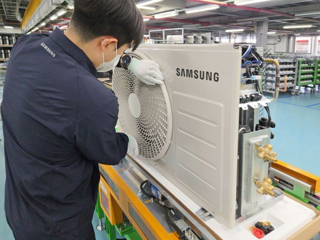 삼성전자가 다가오는 더위로 급증하는 에어컨 수요에 신속히 대응하기 위해 에어컨 생산라인을 풀가동 했다. 사진=삼성전자