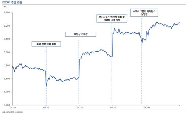 이상준 NH투자증권 연구원은 “핵과 호르무즈 해협 통제권 문제로 인해 미국과 이란의 합의 성사를 예단하기 어렵다”며 “호르무즈 해협 봉쇄 조치가 다시 나올 수 있다”고 내다봤다. 다만 그는 “투자자들이 이를 협상을 위한 레버리지로 해석해 전체적인 시장의 영향은 제한적일 것”이라며 “오히려 이번 실적 시즌이 대외 리스크에 의해 가려진 펀더멘털 성장 흐름을 재확인할 수 있는 계기가 될 것”이라고 덧붙였다.