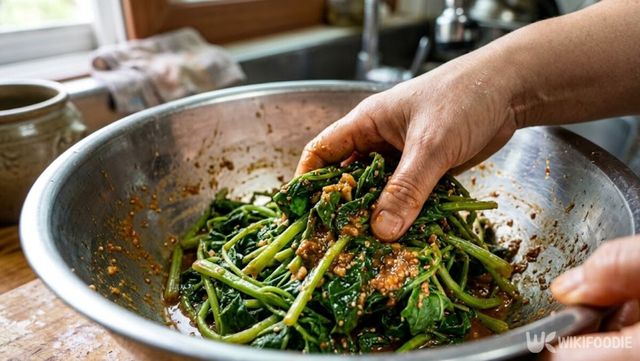 양념을 넣은 뒤에는 손으로 가볍게 버무리는 것이 좋다. 너무 힘을 주거나 오래 치대면 머위 줄기 조직이 쉽게 무를 수 있다. 양념이 전체적으로 고루 퍼질 정도로만 부드럽게 섞어주는 것이 식감을 살리는 핵심이다.
