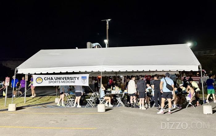 출발을 기다리는 동안 차의과학대학교 스포츠의학과 부스가 눈에 들어왔다. 차의과학대학교는 2022년 말 괌정부관광청과 의료·스포츠 관광 활성화를 위한 업무협약을 체결하고, 이번 대회에 스포츠의학과 팀을 파견했다.