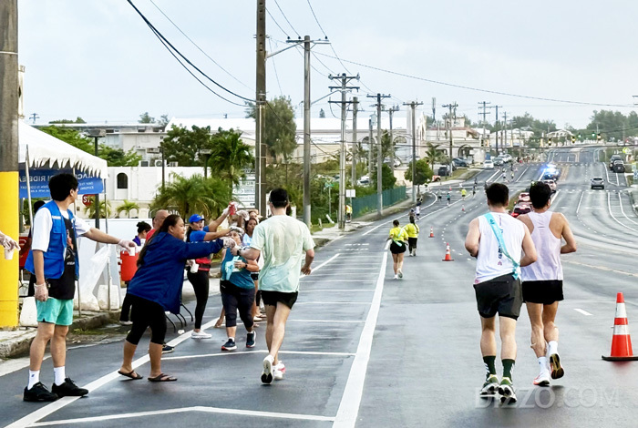 타무닝을 거쳐 괌의 수도 하갓냐를 통과하고, 최종 반환점인 아산(Asan) 마을까지 이어지는 왕복 코스다. 코스 곳곳에 급수대가 마련됐고, 자원봉사자들이 물과 이온 음료를 건네며 러너들을 독려했다.