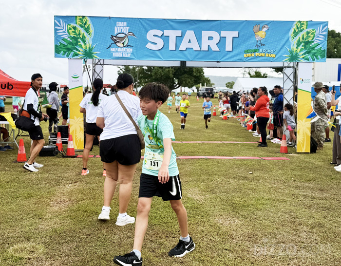 토요일 아침, 경기가 시작되는 이파오 비치 파크는 이미 달릴 준비가 된 아이들로 가득했다. 코코 키즈 펀런은 연령별로 세 구간으로 나뉜다. 만 4~6세는 0.6km, 만 7~9세는 1.6km, 만 10~12세는 3.3km. 만 11세인 아들은 가장 긴 구간에 배정됐다. 이날 등록 참가자는 괌·한국·일본·미국 등에서 325명. 세계 각지에서 온 아이들이 같은 출발선에 섰다.