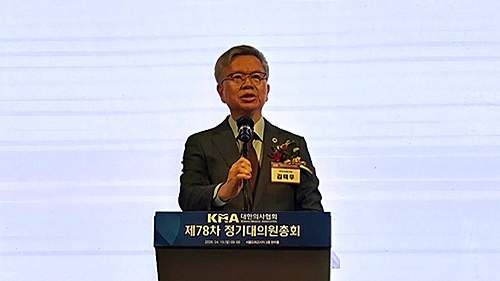 25일 서울 용산구 서울드래곤시티호텔에서 제78차 정기대의원총회가 개최됐다. 연합뉴스에 따르면 이 자리에서 김택우 의협 회장은 지난해 의정갈등으로 붕괴된 의료체계 복원이 의료계나 정부 어느 일방의 노력만으로는 불가능하다고 진단했다.