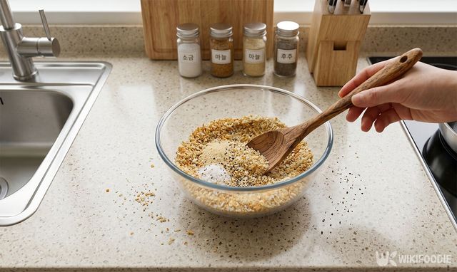 빵가루 1컵에 소금, 후추, 오레가노, 마늘가루, 파프리카 가루를 넣고 섞는다.
