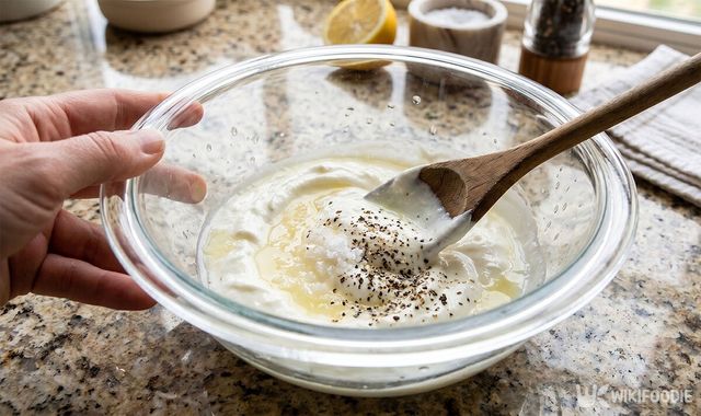 요거트 2큰술에 레몬즙, 소금, 후추를 넣어 소스를 만든다.