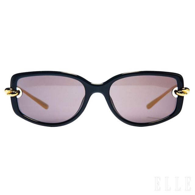메탈 안경 템플과 블랙 프레임이 대비를 이루는 선글라스는 88만원, Bottega Veneta by Kering Eyewear.