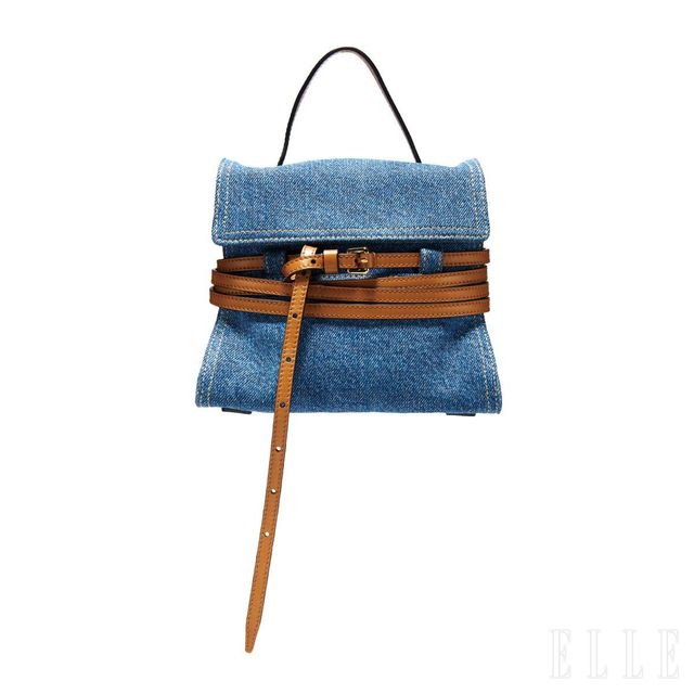 가방을 감싼 벨트 장식이 돋보이는 데님 백은 1백54만원, Moschino.